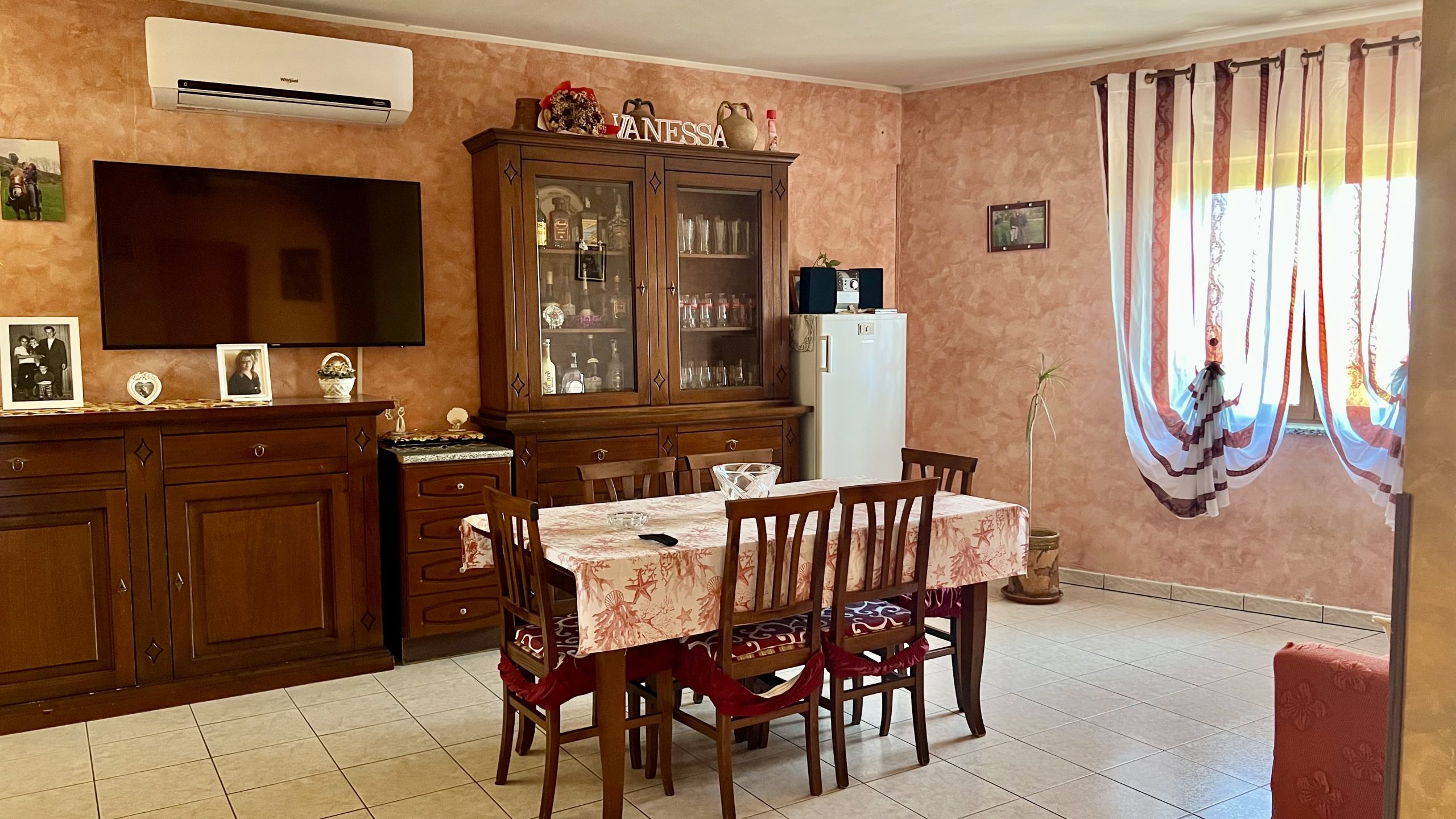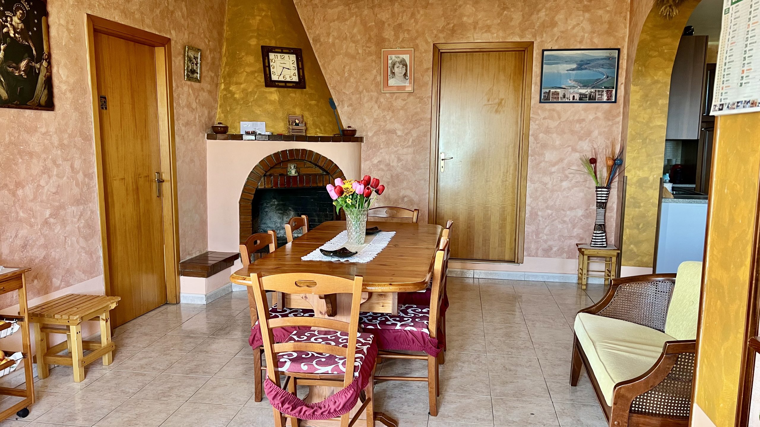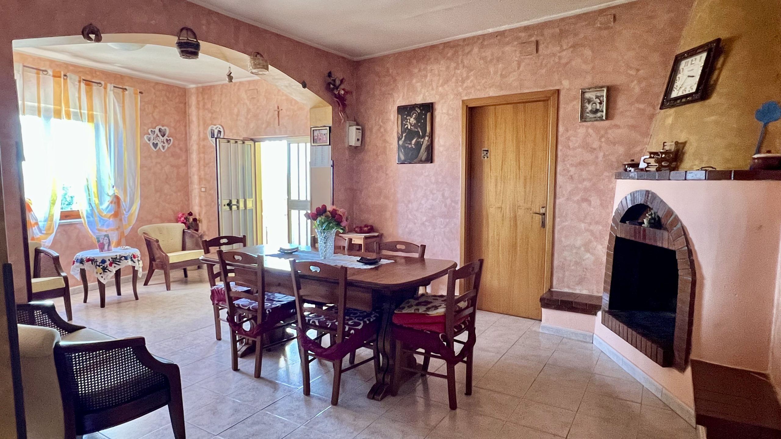 Gli interni accoglienti offrono spazi luminosi e funzionali. L’ampio soggiorno con camino crea un’atmosfera calda e familiare, mentre la cucina è abitabile e le camere adeguate.